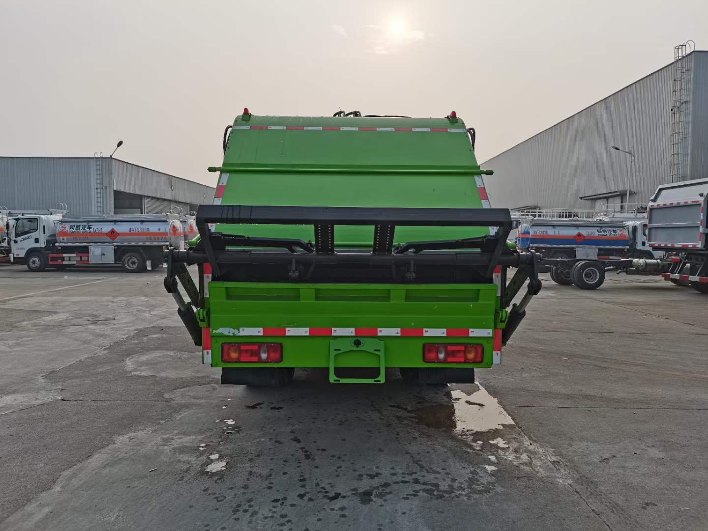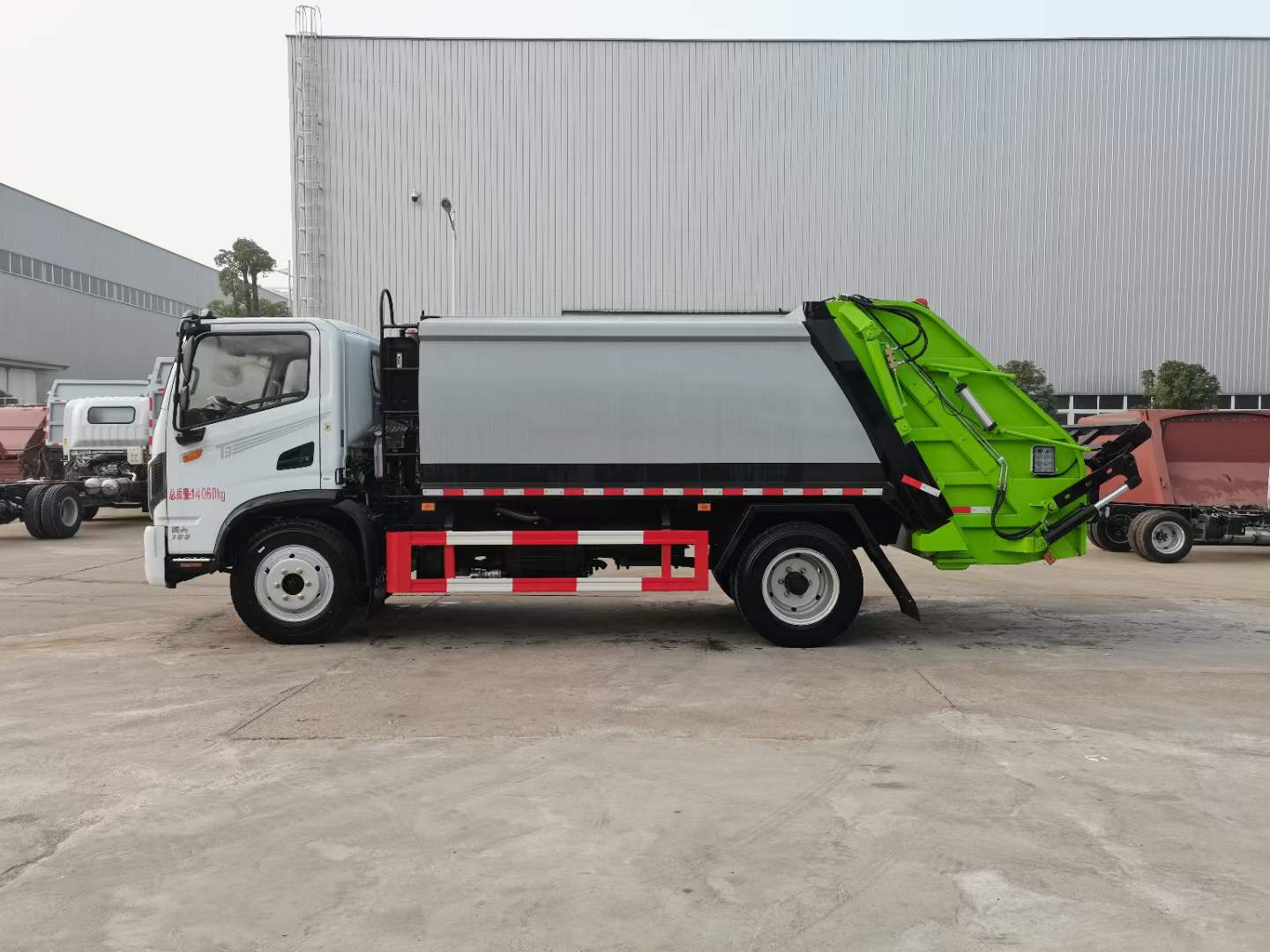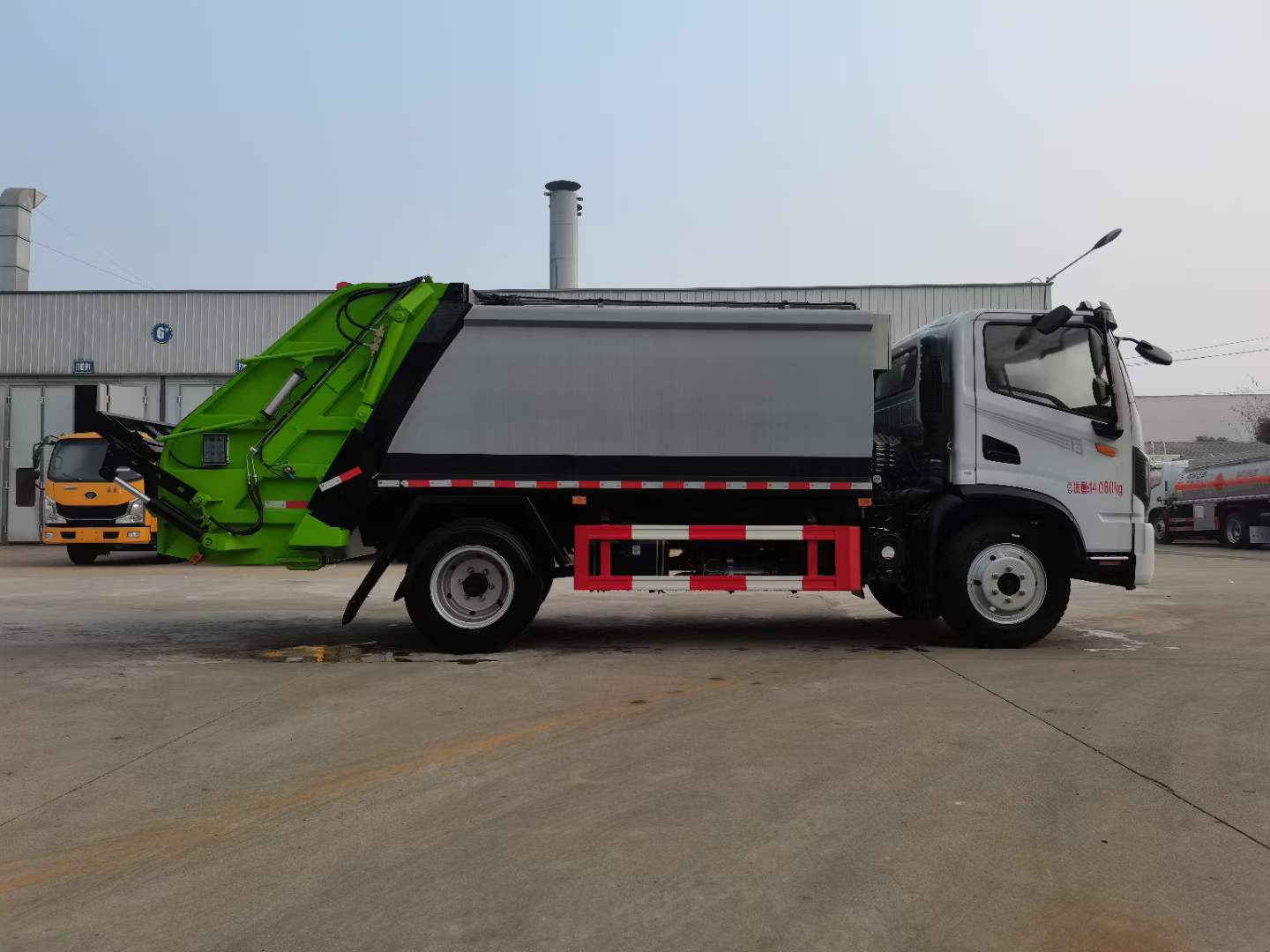 底盤配置: 配置一:云內(nèi)150馬力,萬里揚(yáng)6檔變速箱,前橋2.2噸,后橋4.2噸,8.25鋼絲胎,斷氣剎,ABS,空調(diào),氣囊座椅,電動(dòng)窗,中控鎖。 配置二:玉柴165馬力,萬里揚(yáng)六檔箱,190mm雙層大梁,8.25R20鋼絲胎,2.4/6前后橋,帶空調(diào),氣囊座椅,遙控鑰匙,行車記錄儀。 上裝配置:1,新款弧形箱體,增加箱體容積,整車更美觀,箱體為碳鋼制作,底箱及填充器采用加厚鋼板,耐腐蝕使用壽命長,一層油漆噴涂處理。2,裝載循環(huán)時(shí)間=25S;垃圾排出時(shí)間≤25S;填料提升角度≥95°,壓縮比例為1/3-1/2,一裝部分具備雙向壓縮和蠕動(dòng)壓縮功能帶。3,新款結(jié)構(gòu)加大填充器,手電一體操作模式,帶駕駛室操作,帶駕駛室一鍵卸料功能,3308軸距以上配遠(yuǎn)距離遙控器,尾部裝置可以選裝垃圾翻轉(zhuǎn)斗,掛桶翻轉(zhuǎn)板或者大落地斗。4,CAN總線控制方式,光電開關(guān)加延時(shí)雙系統(tǒng)控制,降低故障率,方便維修。5,帶夜間照明裝置,6方)及以上車型帶雙污水箱,污水箱排水球閥和排水蓋,增加排水管,防止濺水,人性化設(shè)計(jì)。6,標(biāo)配選用:威森搏樂油缸,威森搏樂多路閥,3308軸距以上配備壓實(shí)閥(背壓閥),所有車型標(biāo)配單泵。5000軸距、后八輪車型標(biāo)標(biāo)配雙聯(lián)泵,大油量多路閥。 選裝配置:大落地斗,帶后擺臂,另帶單一掛桶裝置,尾部密封蓋手動(dòng)/氣缸控制,雙聯(lián)泵(多路閥聯(lián)數(shù)增加,液壓泵加大,液壓油箱加大)。 |