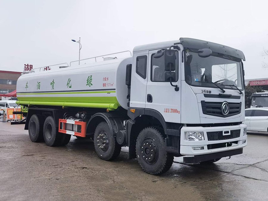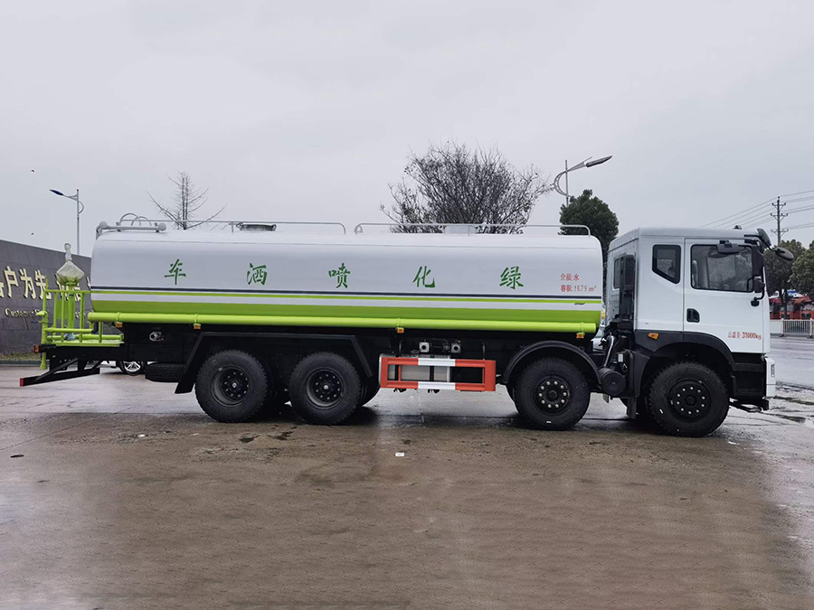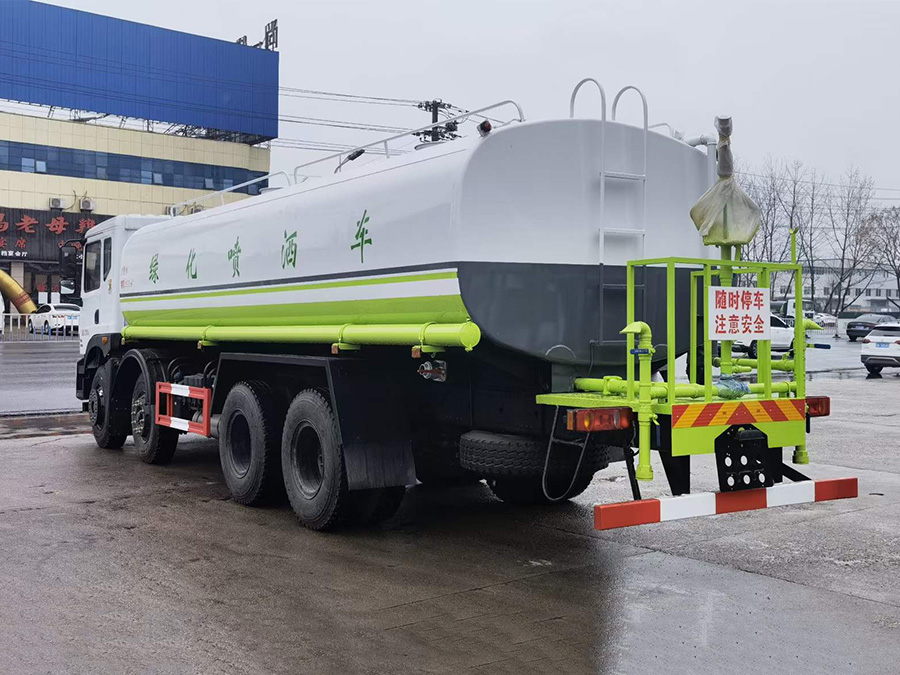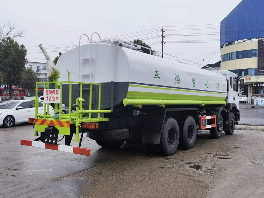 上裝配置簡要介紹:罐體采用標準Q235碳鋼制作,罐體自動焊,裝水25噸,配大功率專用灑水車,可自吸自排,前沖后灑,側(cè)噴,高位花灑,主管道加粗,大通徑球閥,直通球閥式消防接口,帶后工作平臺,沖孔平臺,帶高炮。(可選裝大平臺,可裝30米霧炮降塵)。環(huán)保,免征齊全。