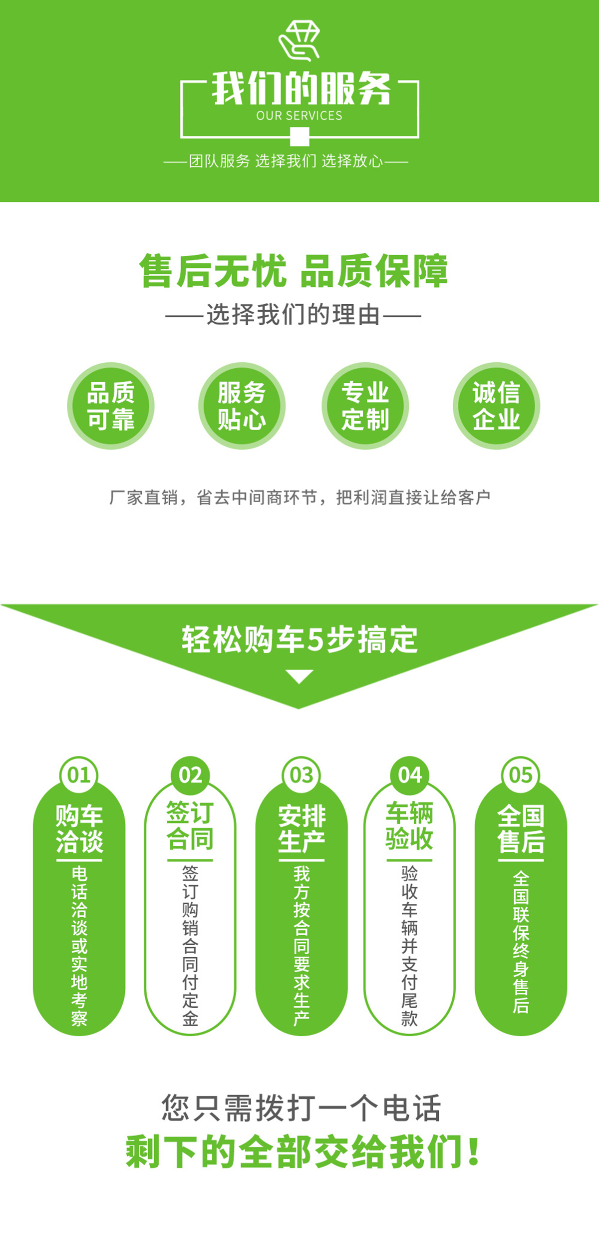 感謝您使用我公司生產(chǎn)的“神綠牌”各型專(zhuān)用汽車(chē),為了更好的提供優(yōu)質(zhì)的售后服務(wù),我公司現(xiàn)鄭重向您作出如下承諾: